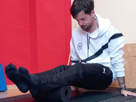Das Nutzen einer Faszienrolle, Faszienball oder ähnlicher Hilfsmittel um Verspannungen zu lösen.